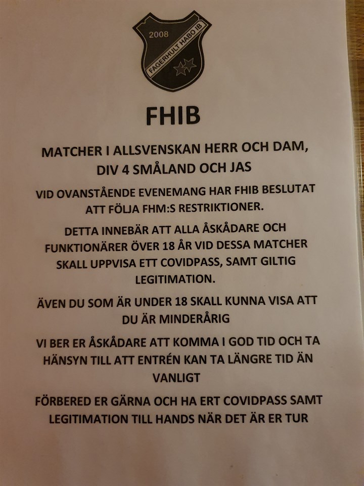 Detta förhåller FHIB sig till tills vidare. Vi hoppas på er förståelse och att vi ändå kan ses i Habo Sporthall och kolla innebandy Fagerhult Habo IB 14 dec 2021 0kommentarer