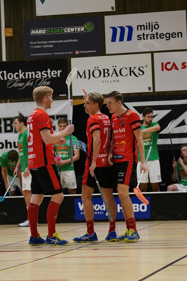 Det blev en riktig målrik tillställning när herrarna besegrade Lillån IBK. Hela 22 st och vi stod för 13 av dom = 13-9 (5-2 3-4 5-3) Publikvänligt är ordet för förutom målen så skapade båda lagen en hel del chanser och Filip Vom Hofe fick jobba hårt i hemmakassen under stundom då gästerna hade ett antal frilägen. Lillån är ett snäpp bättre än tabellen visar. Så om själva matchen..En dålig start fick vi.. 0-2 redan efter 6:20. Men sen kom målproduktionen igång på allvar och fem raka mål innan pausvilan, där Tobias Zälle sköt 3 skott och alla satt! I andra gjorde lagen vartannat mål och följdes således åt i protokollet. Ingen bra period från vår sida . I tredje så var Lillån så pass nära som 8-7 men då tryckte killarna på gaspedalen och gjorde fem raka mål igen och så var matchen över. Det som till sist skilde lagen åt var våra jämna femmor som maler på byte efter byte. Tränaren Johan Kihlblom var inte speciellt nöjd, trots segern: - Nej, det här var inte alls bra. Vi bjuder på massor av chanser och långa stunder är vi alldeles för nonchalanta både i avslut och bakåt. Nu ska vi spela kval om några veckor och då får det inte se ut så här! Dom 3 poängen tar vi med från matchen, inget mer! Man får lov att hålla med. Det finns tendenser till att när vi leder med ett antal bollar så ska det göras "snygga" mål, passningar och dragningar och det straffade sig flera gånger denna afton. Det var kanske bra att det kommer nu så att det går att styra upp till de viktigare matcherna som ligger framför. Priserna till matchens lirare i respektive lag, skänkta av Runes bil, gick till Tobias Zälle och hos gästerna till Filip Gillberg. Tabell Matchfakta jbpictures var på plats och här kan du se alla härliga bilder! Nu är det match hemma redan på onsdag kväll då Craftstaden kommer på besök. Då räknar vi med utsåld hall, för du kan väl inte missa att se södra allsvenskans målgladaste lag in action? Foto: jbpictures