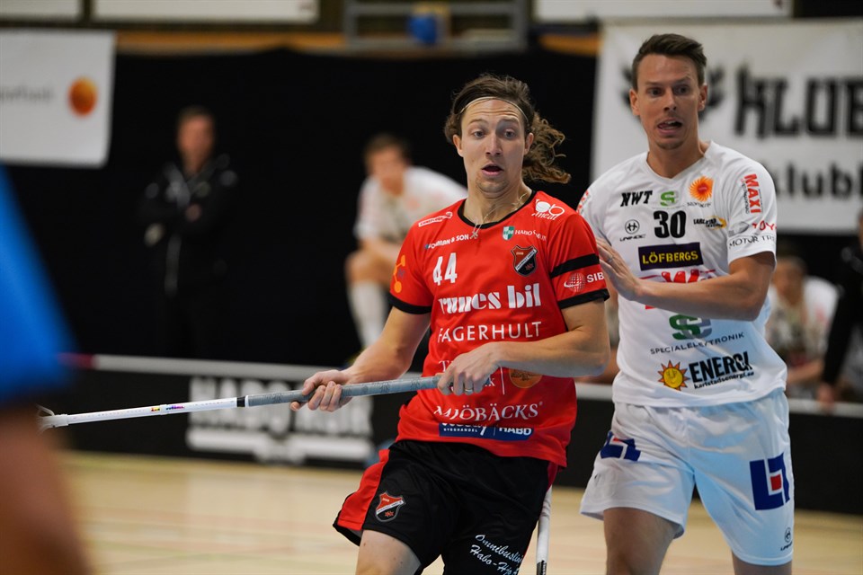 Den röda vinstmaskinen tuggar på. I den sena eftermiddagsmatchen avfärdades Nykvarn med 10-2 (0-0 6-1 4-1). Skottstatistiken talade också sitt tydliga språk att det var ganska rättvist, 48-13!! Det var ett bortalag som kom med endast 11 spelare, vilket kändes lite märkligt. Så väldigt välspelad var inte matchen som sådan, mycket kamp och det släpptes på ganska rejält från domarteamet, åt båda hållen. Tränaren Johan Kihlblom var dock nöjd..- Jag tycker att vi gör en gedigen insats över 60 minuter, där vi genomför det vi pratat om på förhand på ett bra sätt. - Vi lyckas spela i ett högt tempo, vilket är tufft för motståndarna i längden. Nykvarn gör det bra och gör det svårt för oss länge, men till slut blir vi lite för tunga. - Jag är väldigt nöjd med killarnas insats och attityd och jag tycker att vi drar ifrån fullt rättvist. Kul också att vi lyckades slå Fagerhults poängrekord från tidigare, en fjäder i hatten! - Nu ser vi fram emot nästa veckas västgötaderby! Precis som Kihlblom nämnde så passade vi på att sätta FHIB:s poängrekord i den näst högsta serien. 39 löd det gamla på från säsongen 09/10 och 14/15 och nu är vi på 40, och det är ju 6 matcher kvar! Vi tog dessutom över serieledningen från Karlstad. En hyfsad söndagskväll.. I hemmalaget utsågs Hampus Bromander till matchens lirare och hos gästerna målvakten Nicklas Larsson, som höll siffrorna nere, utav matchvärden Habo Rör. Ska bli spännande att se om Nykvarn kan behålla sin kvalplats hela vägen. Highlights Matchfakta Tabell På lördag åker vi till Mariestad och derbyt mot Lockerud. Ett hemmastarkt lag som har mycket att spela för och väldigt gärna vill ha ett ord med i laget. Kommer bli riktigt kul, men tufft! Foto: Patrik Skogward.