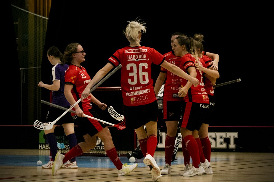 Det blev ännu en vinst när damerna mötte Fröjereds U-lag. 14-6 (5-3 6-1 3-2) Fröjered är duktiga på damsidan och deras u-lag hängde till en början med ganska bra. Sen "gasade" de våra på i andra perioden och det blev aldrig någon "fara på taket". Kedjan med Anteryd, A Ingvarsson (fick blommorna från fröken frö) och Brandt stod som vanligt, får man lov att säga, för mycket framåt men de andra två femmorna hade också bra fart och bjöd på många fina mål och kombinationer. Som det ser ut nu så blir inte nästa match förens 15 dec då Mullsjö kommer på besök. Vi skulle mött Alingsås innan men den matchen ska flyttas och inget nytt datum är satt. Matchfakta Tabell Foto: jbpictures