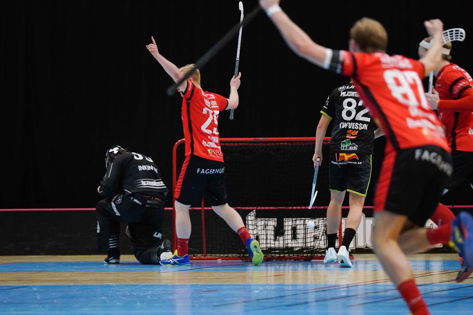 Den starka röda västgötska maskinen tuggar vidare. I går så besegrades Åstorp/Kvidinge med 8-5 (0-1 5-2 3-2) Det blev en hård kamp mellan två formstarka lag. Å/K började bästa och hade ledningen efter att man styrt ut våra avslut i hörnen. Direkt i andra kunde vi spräcka nollan när Oscar Liljegrahn kunde på hockeymanér styra in kvitteringen. Sen släppte det och vi kunde ta en ledning, som vi sen aldrig släppte. Hampus Bromander (fick priset som bästa spelare, skänkt av Fagerhults Belysning) var en av förgrundsgestalterna tillsammans med tvilligbroder Jesper och Jeff Adolfsson så skapade man många fina lägen som dessutom renderade i två snygga mål. Hampus.. - Jag tycker vi gör en bra och stabil match. Vi följer vår matchplan och gör det bra i defensiven som vi sedan får utdelning, senare i matchen. Tränare Johan Kihlbloms analys.. - Jag tycker att vi gör en riktigt gedigen insats, en bra prestation över 60 minuter. - Vi har inte varit helt nöjda med vårt spel de senaste matcherna och ville ta lite revansch på oss själva. Därför var det lite extra kul att se killarna steppa upp och spela bra innebandy. - Åstorp är bra och ställde bitvis till problem för oss, men jag tycker att vi är det bättre laget över 60 minuter. En stark laginsats där vi är tunga att möta och skapar mycket chanser. Bra tryck i hallen också, vilket givetvis hjälper oss framåt! Det ser oförskämt bra ut för tillfället. Utdrygad serieledning och tio poäng ner till just Åstorp/Kvidinge som är precis utanför kvalplats. Nu väntar Lindås nästa söndag. Ett lag som vi mött otaliga gånger men haft svårt att ta poäng mot. Vi får se om vi kan ändra på det.?! Highlights Matchfakta Tabell Foto: jbpictures