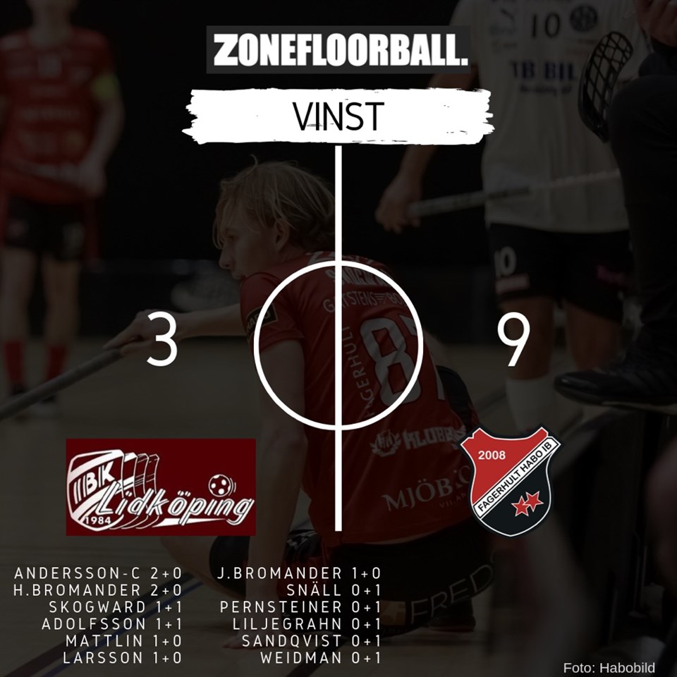 Det var premiär och även Västgötaderby på en och samma gång. Det blev till sist en ganska stabil seger, 3-9 (0-1 2-3 1-5) Efter en ganska jämn inledning så tog vi över mer och mer efter hand. I början på tredje perioden gick ”proppen” ur och med tre raka kassar på lika många minuter så blev avslutningen väldigt odramatisk. Tränare Johan Kihlblom var givetvis nöjd: - En jättebra insatts, där vi gör det vi pratat om, vi är tajta bakåt, vi spelvänder bra och håller ett högt tempo och tröttar ut dom över 60 min. - Vi spelade lågt, vilket jag inte tycker är fel mot motstånd som kanske ska hålla till lite längre ner i tabellen för att få till spelvändningar, vi fick bra betalt för det i dag. Nästa match är favorittippade Karlstad.. - Det ska bli grymt kul att få komma hem till Habo sporthall nästa helg och möta Karlstad. Vi kommer göra allt för att plocka ner dom. Premiärmålskytt blev Tim ”Pajsen”. I övrigt så gjorde mv Filip Vom Hofe sin första allsvenska seriematch och Oscar Liljegrahn sin första match i FHIB tröjan på 3 säsonger! Båda med den äran!! Hampus Bromander fick priset som bästa spelaren i FHIB, vilket var helt i sin ordning. Han levererade bla två snygga kassar!! Matchfakta Highlights Nu vänder vi blicken mot lör 5 okt kl 16:00, då kommer Karlstad på besök. Det är favorittippade Värmlänningar som vann sin premiär hemma mot Åstorp/Kvidinge med 5-2. Vad du gör så missa inte denna match!!