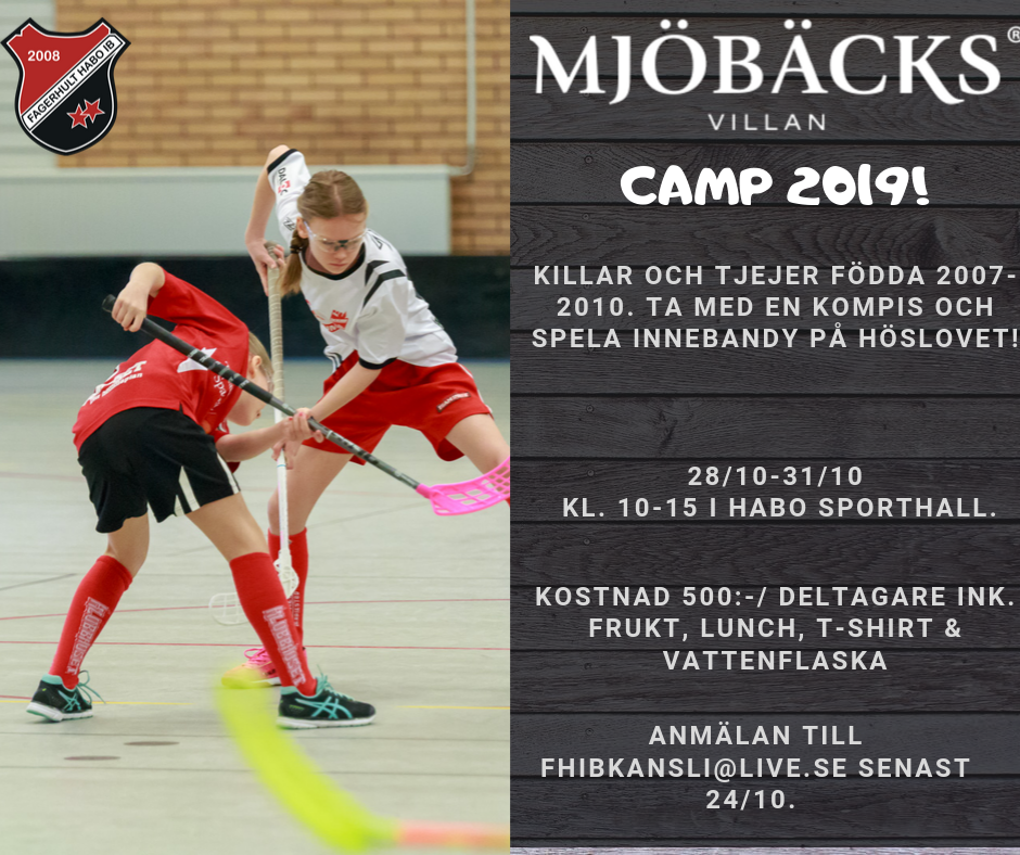 Tillsammans med vår huvudsponsor Mjöbäcksvillan anordnar vi ett träningsläget på höstlovet för killar och tjejer födda 2007-2010. Mjöbäcksvillan CAMP pågår under 28/10-31/10 klockan 10-15 i Habo Sporthall. Ledarna består av spelare från vårat herrlag samt ansvariga. Kostnad är 500:-/deltagare där det ingår frukt, lunch, t-shirt och vattenflaska. Anmälan sker till fhibkansli@live.se senast 19/10. Betalning till bankgiro: 225-3375 senast 24/10. Ange ev. allergier och tröjstorlek vid anmälan. Max 40 deltagare, först till kvarn gäller.