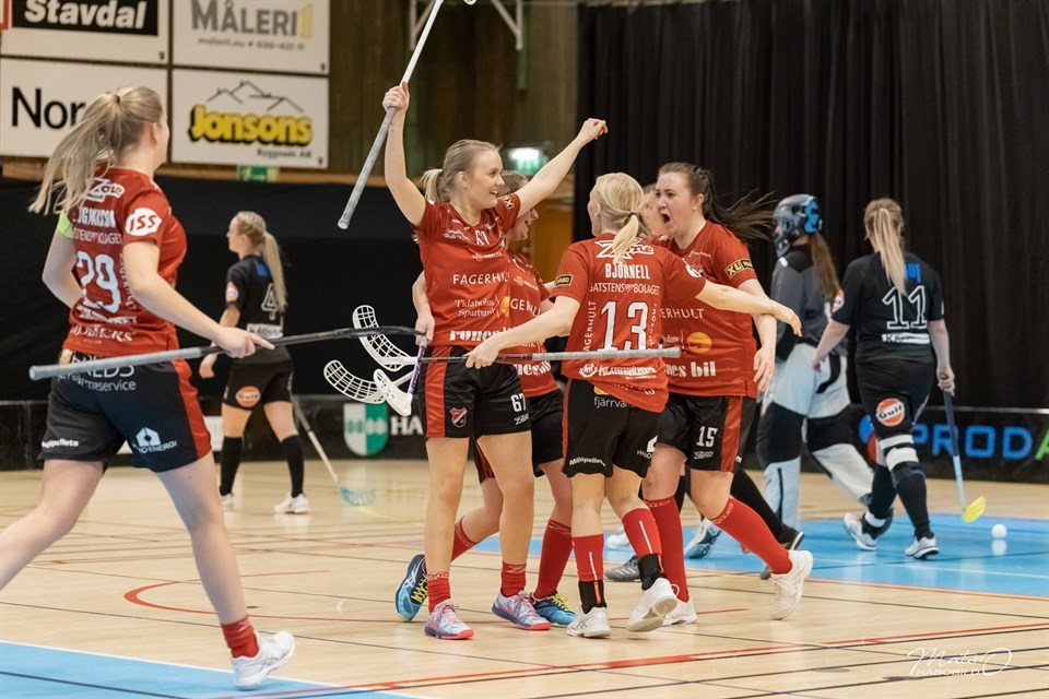 Inför en stor och entuasiastisk publik blev det, som väntad, en tuff avgörande kvalmatch mot Sävsjö. Efter en väldigt bra första period, ledning 3-1, så tog bränslet på nåt sätt slut och Sävsjö kunde vinna med 8-3. Det var givetvis ledsna miner efter matchen, men med facit i hand så var Sävsjö värdiga vinnare, just denna eftermiddag. Vi kom inte upp på den nivån som vi tidigare haft i kvalet. Kanske var det ”stundens allvar” som gjorde sig lite påmind? Ser man tillbaka på säsongen så har våra damer ändå gjort det helt fantastiskt. Vem trodde efter första matchen borta mot nykomlingen Skövde, där man med stor möda vann med 2-1, att vi skulle spela en helt avgörande fight om en allsvensk plats i mitten på april? På totalt 24 tävlingsmatcher har vi endast förlora två. På dom matcherna har vi dessutom gjort osannolika 238 mål! Nästan 10 mål i snitt!! Vi kan inget annat än vara nöjda trots att slutet inte blev som vi hade hoppats på. Vi gratulerar Sävsjö till den allsvenska platsen och önskar dom lycka till! Som förening vill vi tacka alla spelare, ledare, alla övriga som jobbat kring laget, supportrar och sponsorer som gjort att vi tagit sjumilasteg framåt och att detta har blivit den mest framgångsrika säsongen i damernas historia! Nu blickar vi framåt och tar nya friska tag. ”Vi reser oss igen, ja vi reser oss igen..” Matchfakta Foto: Mats Olofsson (habobild.se)