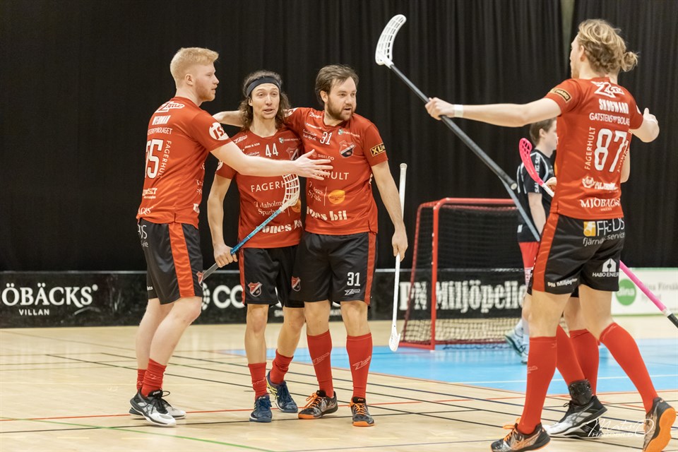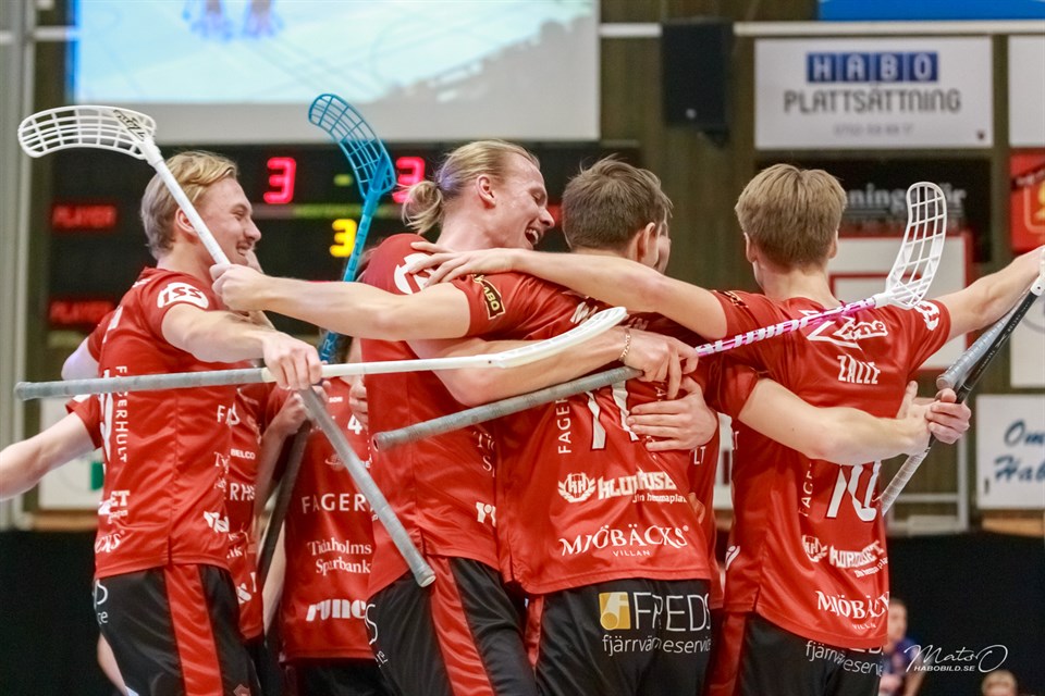 Om mindre än ett dygn, i morgon med start kl 13 spelas den sista omgången för säsongen. FBC Lerum står för motståndet, ett Lerum som var nykomlingar, men som får lämna serien efter dessa 22 matcher. För vår del gäller det att behålla 5:e platsen. - Det är små marginaler för att ta sig till kval, vilket vi siktade på. Några retliga poängtapp här och var gör att vi inte riktigt nådde upp till målet. Vi förlorade bla mot Lerum borta, en match som man ska vinna om man ska vara med där uppe, säger sportchef Andreas Linderum. - Nu ska vi i alla fall avsluta snyggt och visa att vi är betydligt bättre än Lerum, säger Linderum. Att det är en tuff allsvensk serie kan man lätt konstatera. Det var fyra lag från div 1 som kom upp inför säsongen. Åby, Lagan, Lerum och Lillån. Nu åker förmodligen tre av dom ur direkt. Det är Lagan som har en liten chans att hänga kvar om man lyckas vinna över Craftstaden borta samtidigt som Warberg slår Malmö. Lillån klarar sig. Förutom matchen så kommer vi att uppvakta vårt damlag som ju vann sin serie och nu får kvala till allsvenskan. Sen är ju spänningen stor om vem som kammar hem förstavinsten i billotteriet. Hondan står nytvättad och klar för leverans.. Mycket att se fram emot i morgon! Varmt välkomna! Om du inte har möjlighet att se matchen på plats så kan du se den via webben innebandyallsvenskan.tv Tabell Matchhändelser Bild: Mats Olofsson (habobild.se)