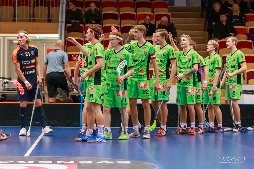 Det blev 1 poäng nere i Oskarshamn. Dock kunde hemmalaget ta extra poängen i förlängningen. 4-3 (1-2 1-0 1-1 (1-0) Man kan vara både nöjd och missnöjd med detta resultat. Vi hade totalt 4 ramträffar, men det var stolpe ut denna gång. Sen är det första gångem vi lyckas ta poäng i deras sporthall. - Är inte alls nöjd med första perioden, visst vi skapar lägen och väldigt bra lägen också men straffar dom inte riktigt. Sen blir vi väldigt naiva med boll och trycker på för mycket som gör att Oskarshamn skapar en del lägen på spelvändningar som de inte behöver jobba allt för hårt för, säger tränare Daniel Pettersson - Andra perioden är bara att glömma, vi gör inte alls det vi pratat om att vi ska göra. Vi jobbar en och en både i försvarsspelet och anfallsspelet. Att det står 2-2 inför tredje perioden är ett under. - Tredje perioden tycker jag ändå att vi är det bättre laget där vi spelar mycket större men samtidigt svårt att skapa tillräckligt mycket chanser för att vinna. - Vår prestation idag är för dålig helt enkelt, vi behöver verkligen höja oss rejält om vi ska få ett roligt slut på denna säsong, avslutar Pettersson. Nu väntar Lillån hemma på söndag. Ett lag vi "bara" ska besegra om vi ska ha någon chans på 4:e platsen. Positivt i kväll var att Onyx överraskande tappade en poäng mot Åby. Matchfakta Tabell Bild: Mats Olofsson (habobild.se)