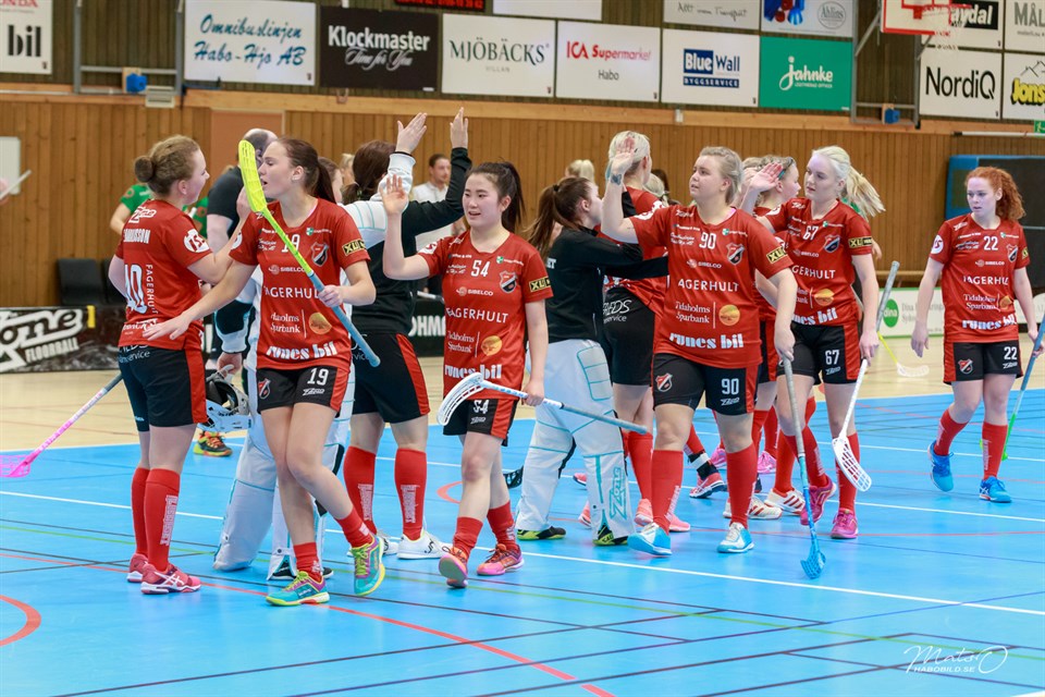 Det har varit en tuff säsong för våra damer. Många matcher som man varit nära men inte fått till det. I eftermiddag var det Alingsås som stod för motståndet och som man kunde besegra med 5-4. Det satt dock väldigt hårt åt. Underläge med 4-1 fram mot slutet av andra perioden. I första perioden tof Alingsås ledningen efter 11:18. Vi han med att missa en straff innan Sofie Bondeson kunde kvittera med ett långskott som smet förbi alla, inkl målvakt. Tiden var då 16:10. Alingsås kunde tyvärr gå in till pausvila med en 2-1 ledning. Det började inte bra i andra perioden heller. 1-3 efter 2:27. Sen följde ett antal utvisningar, flera av dom lite märkliga. Inget av lagen kunde dock utnyttja sina nummerära överläge. 12:23 ökar Alingsås ut sin ledning till 1-4. Vi åker sen på vår tredje utvisning på raken men lyckas reda ut den. Med bara 46 sekunder kvar så kunde Elin Nolberger slå in 2-4 på volley efter en tilltrasslad situation. Ett oerhört viktigt mål. I tredje måste vi framåt. Det gick lite trögt till en början. Efter 7:41 kan vi dock få till en reducering då Emelie Emilsson maskerar ett skott men passar Emelie Bohman som styr in 3-4, snyggt! Nu började det osa hett framför Alingsås kasse. Vi skapade en hel del men Alingsås var också vassa framåt och som tur var har vi en väldigt bra målvakt i Matilda Rehnström som höll tätt. Till sist så kunde vi äntligen kvittera. Klara Brandt får en genomskärare av Emelie Bohman och fri med målvakten så trycker hon in 4-4, så gött! 18:42 tar tränare Amanda Ingvarsson time out. En väldigt lyckad sådan, ska det visa sig. När spelet upptas igen så kan Klara Brandt riva åt sig bollen bakom Alingsås mål och passa fram till Sarah Björnell som med ett vasst dragskott hänger upp bollen i närmaste kryss, inför en jublande hemmapublik! Tiden då 19:18. Alingsås försöker med att ta ut målvakten men det rinner ut i sanden och äntligen så har vi lite flyt och kan bärga hem en skön vinst! Det var många som var bra i hemmalaget men blommorna från Fröken Frö gick till Matilda Rehnström. Tränare Ingvarsson var lättad efter matchen: - Äntligen så får vi vinna igen. Det var vi verkligen värda!! Det är lika sant som det var sagt!! Nu väntar Sandared borta nästa helg som inte lyckats ta en enda poäng ännu. Den SKA vi bara vinna om alla ger järnet! Arkivbild: Mats Olofsson (habobild.se)