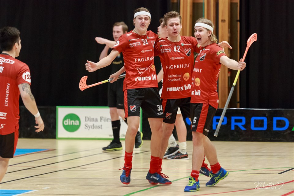 Efter några mindre bra insatser så lyckades herrarna besegra Malmö FBC med 4-1 (0-0 2-1 2-0) efter en kompakt laginsats. En på förhand väldigt tuff bortamatch då FBC besegrat bla både Karlstad och Lindås på hemmaplan. Fagerhult Habo kom ut rejält fokuserade redan i den första perioden och även om Malmö hade en del boll så hade bortalaget kontroll på händelserna. - Det märktes tydligt att killarna på riktigt var sugna på att vinna den matchen och underkastade sig laget och taktiken på ett mycket bra sätt kommenterar tränarparet Kent Henriksson och Viktor Andersson. Det enda som hände i första var att vi dödade en utvisning, som givetvis också höjde moralen. I början av den andra perioden kom också utdelningen framåt. Pontus Mattlin sköt från halva plan och Marcus Larsson skymde målvakten så att den gick in. Föredömligt arbete framför målet. Slarv bjöd in Malmö till 1-1 men laget visade styrka idag och den andra perioden var oerhört bra offensivt. Tim Andersson-Carlsson pricksköt 1-2 upp i krysset med stor precision. Ett mycket viktigt psykologiskt mål. Vi hade sedan bud på flera mål men Malmös målvakt storspelade. I mål stod Johan Ringqvist återigen som tryggheten själv efter ett par mindre bra insatser och räddade den gången allt som kom i hans väg. I den tredje perioden sköt backgiganten Pontus Mattlin in 1-3 tidigt och Malmö kändes redan där slagna. Ett powerplay för Malmö gjorde att dom fick nytt hopp men de lyckades inte skjuta förbi ett kompakt bortaförsvar. Alexander Pernsteiner gjorde sedan 1-4 i tom kasse och segern var bärgad. - Skönt att vinna igen. Killarna förtjänade verkligen poängen idag. Hela femman med Mattlin, Jonatan Fantenberg, "pajsen" Andersson-Carlsson, Marcus Larsson och Efraim Björnell är starkt bidragande med 3-0 i plus minus statistiken men även andra spelare som Filip Wiklund och Samuel Olsson gör oerhört bra prestationer där ute. En riktig laginsats avslutar tränarparet Henriksson/Andersson. Det var en väldigt viktig seger och när övrig resultat denna helg gick oss i händerna så har vi nu 5 poäng ner till det förhatliga nedflyttningsstrecket. Nästa helg väntar Skoghall hemma. En oerhört viktig match. Nu vet vi igen hur det gött det är att vinna så segern var mentalt mycket viktig! Poängfördelningen: Pontus Mattlin 2+0 Efraim Björnell 0+2 Tim "pajsen" A-C 1+0 Alexander Pernateiner 1+0 Jonatan Fantenberg 0+1 Arkivbild: Mats Olofsson (habobild.se)