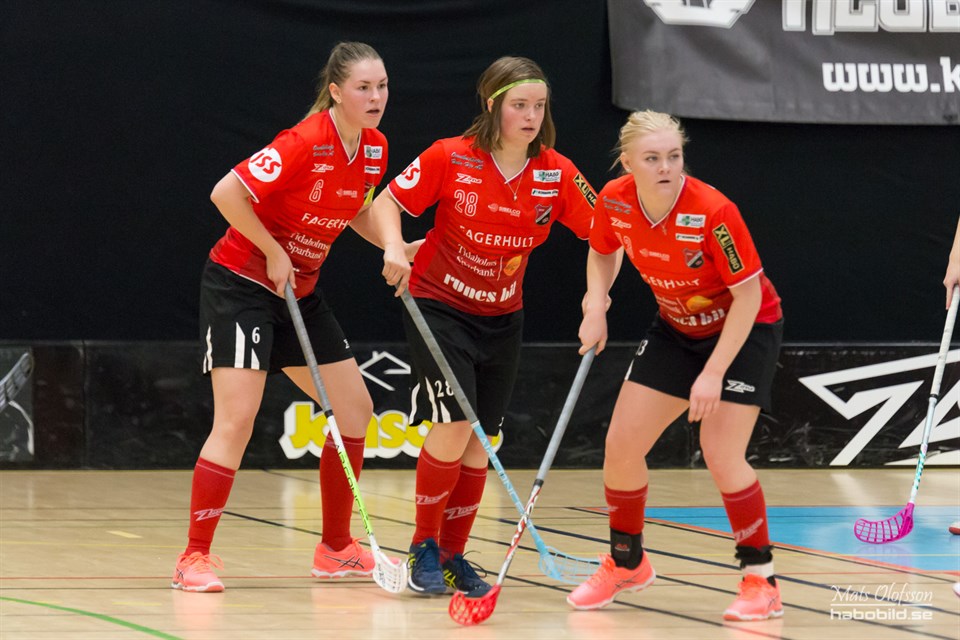 Damerna gjorde vad dom kunde i går kväll mot suveräna serieledarna och med all sannerlighet seriesegrarna Fristad. Det blev dock förlust med 5-9 (0-2 3-2 2-5) En bra första period blev till en magnifik andra då vi visade prov på fina kombinationer och där ingen hade protesterat om det slunkigt in något mer mål i Fristadskassen. Vid ställningen 4-4 i tredje perioden så hade vi ett gyllene läge att göra 5-4 men målvakten gjorde en "idiot" räddning och bara minuten senare kunde i stället Fristad ta ledningen som dom sen inte släppte. Det krävdes dock att gästerna gick ner på två femmor för att lyckas vinna. Hemmapoängen fördelades enl följande: Emelie Bohman 2 mål, 1 ass Klara Brandt 2 mål Linn Cederqvist 1 mål Sarah Björnell 2 ass Elin Nolberger 1 ass Priset till matchens lirare, blommor skänkta av Fröken Frö, i FHIB gick till Emelie Bohman som förutom målen gjorde en strong insats. Detta var en av de bästa matcherna denna säsongen och samtliga spelare ska ha beröm, men en liten extra stjärna till Matilda Rehnström i målet. Nu gäller det att spinna vidare på denna tråd. Nu väntar Alingsås hemma redan på söndag. Ska bli en intressant tillställning att följa! Bild: Mats Olofsson (habobild.se)