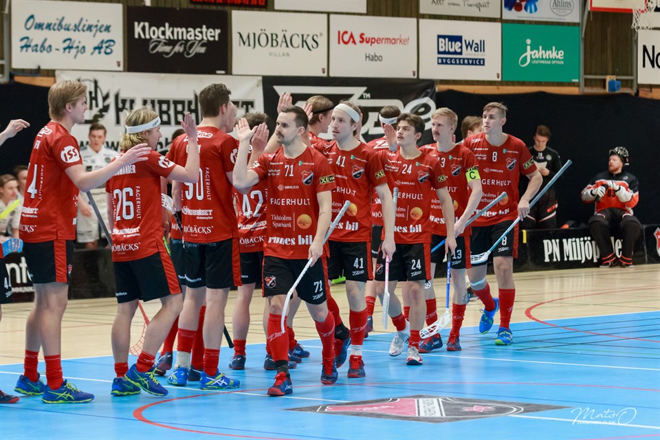 Det blev, som förväntat, en tät och väldigt spännande match mot FBC Kalmarsund. 3 poäng bärgades i alla fall hem efter 5-4 (2-0 2-3 1-1) som slutresultat. Period 1 Klockan tickade fram till 2:59 när Efraim Björnell öppnade målskyttet efter att Marcus Larsson från högerkanten passat in till Jonatan Fantenberg som släpper ut bollen på vänsterkanten och "Efa" klippte till direkt. Det böljade fram och tillbaka, något som blev synonymt med hela matchen. Tränarparet Kent Henrikssons och Viktor Anderssons taktik var att matcha vår "första" femma mot deras första osv. När vi kom i "otakt" i mitten på perioden så passade Jesper Bromander på att trycka in 2-0 mot FBC:s första, assisterad av tvilling Hampus som "grävde" fram bollen bakifrån målet. Härligt! Resultatet stod sig perioden ut. Period 2 Efter en "patenterad" soloraid direkt i inledningen av Marcus Larsson som skjuter, målvakten räddar men Filip Wiklund fyller på bakifrån och kan skicka in returen till 3-0 efter bara 37 sek. Bara minuten efter så blir vi lite övermodiga och FBC:s William Larsson kan sno åt sig bollen och reducera till 3-1. Kalmarsund har mycket boll men defensiven är rikigt bra och de bollarna som slinker förbi täck tar Johan Ringqvist. 13.52 kan vi, efter att ha brutit på mittplan, luckra upp FBC försvaret då Larsson lägger in till Björnell som hittar Wiklund som rundar målvakten och sätter 4-1 precis vid stolpen. Tid 13:52. En utvisning efter 15.09 åker vi på efter att ha haft 6 spelare på banan. Väldigt onödigt i det läget. Ett uppoffrande försvarsspel löser dock detta väldigt bra och dom 2 minuterna försvinner snabbt. Men om vi där slappnade av lite, är frågan, då vi släpper in två mål med bara 36 sek mellanrum, 18:04 Mattias Jansson och 18:40 Kim Nilsson. Återstående tid kan vi reda ut och gå till pausvila med ett mål upp, 4-3. Period 3 Kalmarsund kommer nu ut med en väldigt hög press. Försvarsarbetet sätt på prov och Ringqvist får jobba hårt i kassen. Pressen gör att vi får till otroligt fina kontringslägen och efter ett rasande grannt anfall där Ringqvist kastar ut till Alexander Pernsteiner som väntar in Tobias Haraldsson som får bollen perfekt i mitten och kan "sprätta" upp 5-3 i nättaket efter 5:55. Ett väldigt snyggt och viktigt mål! FBC fortsätter trycka på och kan med lite tur, bollen rullar sakta in, få ytterligare en reducering efter 8:16, Gustav Bäckstedt. Tiden går och vi har många kanonlägen på kontringar men bollen vill inte in fler gånger. Med 1:15 kvar tar FBC ut målvakten men skapar inget och när "hesa Fredrik" ljuder så känns det riktigt skönt. Priset till matchens lirare, skänkta av Runes Bil, gick till William Larsson i FBC och i hemmalaget till Filip Wiklund. I övrigt ska femman med Larsson, Björnell, Wiklund, Mattlin och Fantenberg ska ha stort cred som överglänste Kalmarsunds "superfemma" och vann matchen i matchen med 2-1. Kent Henriksson sammanfattar: - Vi gör alla en fantastisk match. Taktiskt precis vad vi pratat om! Prestationmässigt sett så gör "Efa" ett otroligt jobb i defensiven och är något alldeles extra i dag. Han gick genom eld för att vinna. Två saker till som var kanon! Trångt på läktaren och en hejarklack som trummade på hela matchen. Suveränt!! Vore kul om vi kan fortsätta i den andan.. Kalmarsund då? Visst är det ett duktigt lag, inget snack om den saken, men deras "problem" är nog att det nog hänger för mycket på Kim Nilsson, Marcus Johansson och Tim Nyander att de ska prestera. Ska bli spännande att se om det håller ända till SSL. Nu väntar ännu en tuff uppgift. Karlstad på bortaplan nästa söndag. Men med gårdagens match i färskt minne så ska det definitivt inte vara någon omöjlighet. Självförtoendet är dessutom på topp men det gäller att vara ödmjuk inför alla matcher. Så här skriver Jp Se alla fantastiska bilder av Mats Olofsson här habobild.se