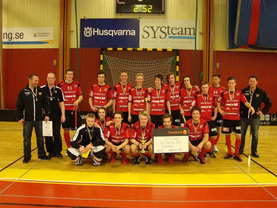 Året är 2010 och vårt juniorlag har vunnit Fair Play Cup i Jönköping. Ståendes från vänster: Leif Blåberg, Patrik Holm, Jonatan Olsson, Tobias Haraldsson, Daniel Palmqvist, Efraim Björnell, Simon Berg, Mattias Lindgren, Pontus Mattlin, Daniel Andersson, Samuel Rosen, Andreas Lindholm, Michael Öhman. Knästående från vänster: Anton Snarberg, Robin Blåberg, Fredrik Bakos, Andreas Lundström, Jakob Lundström, Robin Karlen. Visst är det härligt med gamla foton.. Bild från Smålands Innebandyförbund