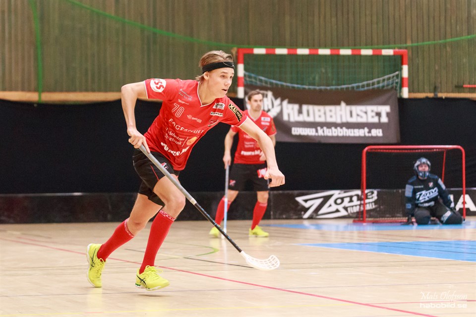 Det blev som väntat en så kallad "skrattmatch" mot jumbon IBF Göteborg. 25-3 (6-1 12-0 7-2) stannade siffrorna vid. Vad ska man skriva efter en sådan här match? Siktet var inställt på att göra mer än dom 18-2 som vi gjorde hemma, och det lyckades vi med, med råge. Att en lag tappar allt inför en säsong hör inte till vanligheterna. Synd bara att det skulle hända i allsvenskan. Får inte Göteborg ihop nåt bättre till nästa år så lär man åka kana raka vägen ner i div 2 också. Det fanns dock en hel del att glädja sig över. Tobias Zälle (bilden) passade på att göra 6 mål(!!) + 3 ass, 9 poäng totalt. Blir nog svårt att upprepa den bedriften, i alla fall i allsvenskan :-). Alexander Pernsteiner och Filip Wiklund spädde också på sin totala målskörd med fyra kassar var. Några rosor delar vi inte ut, blir inte rättvist mot någon. Tyvärr, för vår del, vann Visby över Lindås vilket gör att vi kan bli som bäst 7:a. Det vore dock kul om vi kunde ta 34 poäng, fyra fler än i fjol. Huvudtränare Conny Steenberg ger sin analys av matchen: - Det blev precis som vi trodde. Ett håglöst Göteborg som inte har i allsvenskan att göra. Våran egen prestation är svår att säga då det va som att spela powerplay i 60 minuter! Vi gör självklart en hel del fina mål men totalt sett en match som inta ska existera i innebandyn. Nu ska vi avsluta på bästa sätt med vinst mot Malmö i sista omgången. Hela poängskörden: Tobias Zälle 6+3 Filip Wiklund 4+2 Daniel Pettersson 2+3 Alexander Pernsteiner 4+0 Robin Levander 1+3 Jeff Adolfsson 3+0 Pontus Mattlin 2+1 Albin Lundell 0+3 Adam Fridh 2+0 Jonatan Olsson 1+1 Samuel Olsson 0+2 Samuel Rosen 0+2 Jakob Lundström 0+1 Martin Ullström 0+1 Som sagt var..nu väntar Malmö hemma nästa söndag. "Billotterismatchen" som vi kan kalla den. Dragningen i billotteriet sker efter matchen där bla en splitterny Honda från Runes Bil står på spel. Missa inte detta för allt i världen!! Bild: Mats Olofsson (habobild.se)
