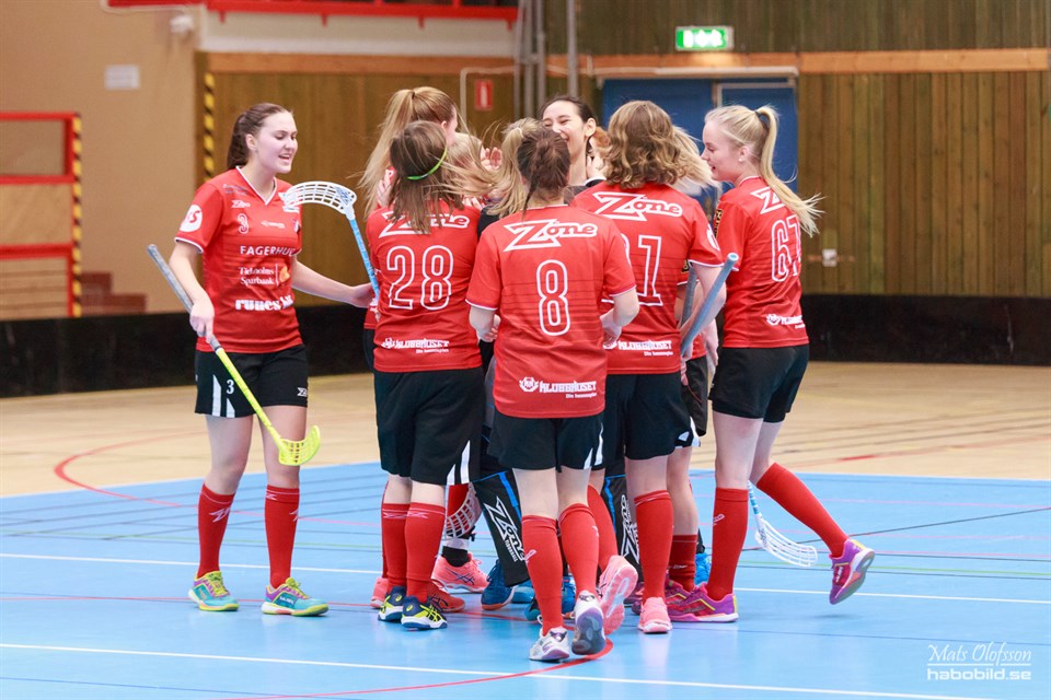 I går, lördag, spelade damerna borta mot Borås IBF. Ett lag man slog hemma med 5-4 efter vissa besvär och med ett sent mål av Elsa Haraldsson. Matchen nu var en jämn tillställning fram till i mitten av den tredje perioden då Fagerhult tände till rejält efter att coach Efraim Björnell skickats upp på läktaren. Då tog Dan Nilsson, som i vanliga fall är materialare, över rodret och tillslut slutade matchen med en 6-8 vinst. Periodsiffrorna; 2-2, 2-2 2-4. Tränaren Efraim Björnell: - Vi kändes lite slöa i de två första perioderna. De körde ett man-man försvar som vi inte utnyttjade med fart utan blev istället väldigt stillastående och därmed uppätna. Inför tredje blev det en rejäl utskällning men det som gjorde att laget verkligen höjde sig var alla utvisningar vi fick emot oss. Sen att jag blev uppskickad på läktaren efter ha ifrågasatt två utvisningar under hela matchen var mycket märkligt. Svårt att ha domare som inte vill prata i lugn och ro om situationer som sker. Men starkt av tjejerna att köra på och gå ifrån och tillslut vinna. Cred till samtliga! Det ska tilläggas att samma morgon som matchen spelades fick laget ett återbud från Sofia Järpehult som blivit magsjuk under natten. Sedan tidigare var lagets andra målvakt Rebecca Stjärnklint också borta på grund av jobb. Då båda ordinare målvakterna inte var tillgängliga licenserades F16-lagets tränare Amanda Rosendahl och stod matchen! Hon gjorde det med bravur och ingen kunde tro att det var flera år sedan hon stod senast, då några få matcher med 95-laget. Hon lyckades även med bedriften att göra en assist till ett av Emelie Bohmans mål. Bohman som för andra matchen i rad gör 3 poäng! Bra jobbat! Poängfördelning: Emelie Bohman 3+0 Elin Nolberger 2+1 Sarah Björnell 1+1 Evelina Skarfelt 1+1 Elsa Haraldsson 1+0 Linn Cederqvist 0+1 Annie Olsson 0+1 Klara Brandt 0+1 Amanda Rosendahl 0+1 Nu väntar Wårgårda borta på fredag kväll och sen Tvåstad redan på lördag, sista matchen för säsongen hemma i Habo. Vi har fortfarande häng på tredje platsen. Det behövs minst 3 poäng på dom båda matcherna. Kommer förmodligen bli en målskillnadsaffär, så det behöver ösas på. Bild: Mats Olofsson (habobild.se)