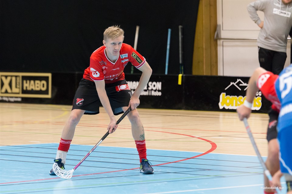 Rikard Stenbäcken har under många säsonger parkerat överst när det gäller antal seriematcher med A-laget. Hans 171 matcher kändes svårslaget, fram till nu. Efraim "Efa" Björnell har nu gjort 172 i och med matchen i går kväll. Något som han firade med att göra ett mål och två assist! Det tog honom nästan 8 säsonger att passera Stenbäcken. Efa började som liten knatte att spela och kom med i herrtruppen som en ung talang ,17 år gammal. Han har under dessa år utvecklats till en ledargestalt, både på och utanför planen. En säsong i SSL med Warberg har det också hunnits med. Till en börja med så får vi säga grattis! - Tack. Jag känner mig stolt! Hur känns det att stå överst i "matchtabellen"? - När man kom upp såg man upp till Stenbäcken och grabbarna och nu har man kämpat sig förbi dem i antal matcher. Hade du trott att det skulle bli så många matcher, när du en gång började? - Nej det hade jag väl inte. När jag var yngre ville jag till Gbg och målet var Pixbo. Men när det väl gällde så vågade jag inte ta steget trots allt, utan det tog ett x-antal säsonger till innan jag tog klivet, då till Warberg. Något som blev en kortare historia än det var tänkt från början men trivdes inte med livet och då var det svårt att leverera på planen oxå. Har du något minne från dom första matcherna i A-laget? - Kommer ihåg mitt första mål, tro det eller ej. Vann bollen högt bröt in i banan och tryckte upp den i första X Vem var din första A-lags tränare? - Lite osäker faktisk, Tror det var "Söppe" ? Har du funderat på hur länge du ska hålla på? - Jaa du..att fortsätta så länge jag orkar att köra försäsongen. Har man inte glöden att träna så blir det svårt hålla uppe sitt spel och då kan man lika gärna lägga ner. Men just nu känns det som jag har några år kvar! Så 200 minst! Vi tackar Efa och hoppas givetvis att han kommer passera 200 matcher med råge! Här är topp 3 med all fakta. Efraim Björnell 172 matcher, 125 mål, 123 ass, 248 poäng, 80 utv.min Rikard Stenbäcken 171 matcher, 259 mål, 112 ass, 371 poäng, 80 utv Niklas "falköping" Karlsson 165 mat, 104 mål, 132 ass, 236 poäng, 54 utv Ett rekord som blir otroligt svårslaget är Stenbäckens 371 totalpoäng. Det får bli nästa utmaning för Efa! Alla spelare och antal matcher kan ni se på herrarnas hemsida under dokument. Väldigt spännande läsning! Bild: Mats Olofsson (habobild.se)