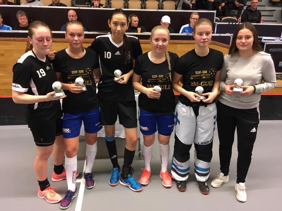 I distrikt SM i Umeå gjorde flickorna i Västergötland en helt otrolig insats när man tog sig hela vägen till final. Skåne var semifinalmotståndare, ett distrikt som alltid håller sig långt fram. Dom avfärdades med hela 6-1. Där var dock krafterna slut och finalmotståndarna Stockholm kunde vinna med 6-2. Det är, så vitt vi förstått, första gången västgötskor tar medalj av denna ädlare valör i detta mästerskap. Evelina Skarfelt blev dessutom uttagen i All Star Team. Fantastiskt roligt! En silvermedalj fick även Elin Nolberger, vår andra representant. Stort Grattis till er båda! Resultat distrikts SM flickor För killarna blev det betydligt tuffare. Repass redan i gruppspelet. Våra båda spelare, Oliver Calebsson och Alfred Nolberger skötte sig dock med den äran och var bland dom bästa i laget, rapporteras det från Umeå. Bra jobbat, säger vi då! Resultat distrikts SM pojkar Läs och se mer här: SIBF Distrikts SM hemsida Bild från Svenska innebandyförbundets Facebook. Evelina #10