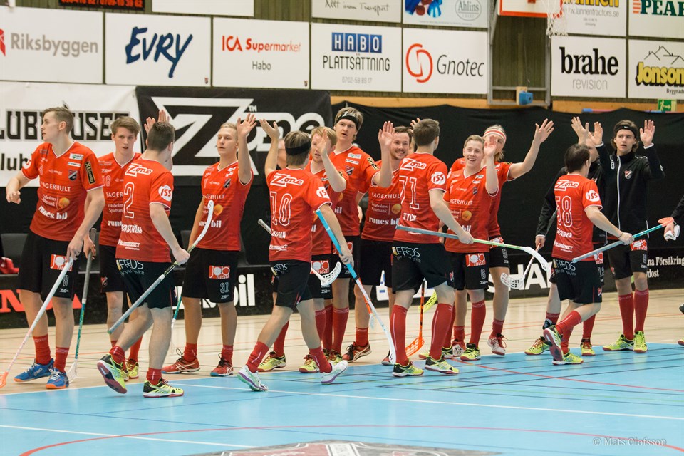 Det blev seger mot jumbon Åstorp/Kvidinge med 8-5 (1-0 3-1 4-4). Men det satt ganska hårt åt. Första perioden blev målsnål. Endast Jeff Adolfsson kunde hitta nätmaskorna när han snappade upp en boll i en tilltrasslad situation och skickade upp den i bortre krysset, utan assist. Det borde och skulle nog varit betydligt fler mål på alla dom chanser vi skapade men lite skärpa i avsluten saknades. Skottstatistik 7-1. I andra perioden började det hända mer saker. Först ökar Pontus Mattlin på till 2-0 efter 3.55 med en riktig kanon från sin backplats med ass från Jakob Lundström. Strax efter, 5.05, sticker Å/K upp och reducerar till 2-1. Speakern hinner knappt rapportera målet innan Filip Wiklund hittar Tobias Zälle med en fin pass där han avancerar och prickskjuter 3-1 väldigt snyggt. Tid 5.32. Vi åker sen på ett boxplay efter 6.28 men håller ganska enkelt tätt. Vi fortsätter skapa en hel del men Å/Ks målvakt "förstör" för oss. Vi får dock viktiga 4-1 med oss in i pausen då Zälle får skottläge igen och med en dragare sitter bollen. Assisten kommer från Adam Fridh som med passen öppnar upp hela högersidan, väldigt elegant. 19.22 får vi en U2a igen. Vi reder dock ut det. Skottstatistik 9-3. I tredje perioden lyckas vi hålla tätt den tid som återstår i boxplay men sen slarvar vi och tappar för en stund koncentrationen och vipps så står det bara 4-3 på tavlan. Tid för målen 3.01 och 4.34. Nu gällde det att försöka varva upp igen. Ett PP efter 6.32 resulterar inte men Å/K är nu uppe i varv ordentligt och skapar faktiskt ett par riktigt farliga chanser då. Det är nu ställningskrig på banan och nästa mål blir oerhört viktigt. Efter 11.19 så kommer ett förlösande 5-3 mål när Jonatan Olsson bryter fram på vänsterkanten och får till en kontring. Hans precisa pass hittar fram till Oscar Liljegrahn som trycker dit bollen stenhårt. Det börja "grina" till lite nu och minuten efter få vi spela PP igen. Den här gången är koncentrationen betydligt bättre och efter att ha snurrat runt med bollen så hittar Simon Hultman Erik Olofsson med ett instick och det smäller direkt, 6-3 14.11. Men Åstorp ger sig inte. 16 sekunder senare så reducerar dom igen, 6-4. Gästerna tar time out efter 16.50 för att försöka få nya krafter. Det blir dock inget särskilt tryck efter det eftersom vi erövrar bollen och kan spela av tid. 17.56 så punkterar vi matchen för gott. Mattlin hittar Adolfsson mellan alla klubbor och ben som i sin tur skickar bollen upp i nättaket. Ett riktigt klassmål! Å/K tar nu ut målvakten och lyckas få in sitt 5e mål för kvällen 19.09. Men vad hjälper det när Robin Levander kämpar sig fram i ett kampmoment och lyckas pressa sig förbi sin försvarare och retfullt peta in 8-5 i tom kasse. Skott i sista 13-7, totalt 29-11! Sammanfattningsvis så är vi det bättre och starkare laget. Segern är hur rättvis som helst men vi har en förmåga att slappna av vissa stunder som i bland straffar sig. Vi har sen tre femmor som presterar mot Åstorp, som i mångt och mycket förlitar sig på en. Det är nog det som gör att dom ligger och kämpar i botten. Dom får det kämpigt att hålla sig kvar men det är ju 12 poäng kvar att spela om så hoppet finns. Vi önskar dom i alla fall lycka till! Pontus Mattlin fick priset som bästa hemmaspelare. Hans assist till 7-4 var en av matchens delikatesser. Vi måste också nämna Tobias Zälle, som gör sin bästa match för året, med 2 mål, men framförallt Jeff Adolfsson. Inte bara för att han också hänger 2 utan för att han måste vara en av de jobbigaste spelarna att möta i hela serien. Springer kopiöst mycket och det känns som om han är överallt. Ett energiknippe utöver det vanliga! Med fyra omgångar kvar är vi nu uppe på 5:e och har nu ordentligt häng på en kvalplats. Övriga resultat gick rätt för vår del och vi har allt i egna händer då vi både har Lindås och Örebro kvar, hemma dessutom. Men först en väldigt tuff bortamatch mot Craftstaden som kan bli avgörande för vår fortsättning. Den spelas om 2 veckor då det är landskampsuppehåll nästa helg. Rätt skönt med lite extra vila då det varit tätt med matcher i januari. Bild: Mats Olofsson Se fler bilder på habobild.se Läs Tränare Steenbergs kommentarer om matchen: J-nytt