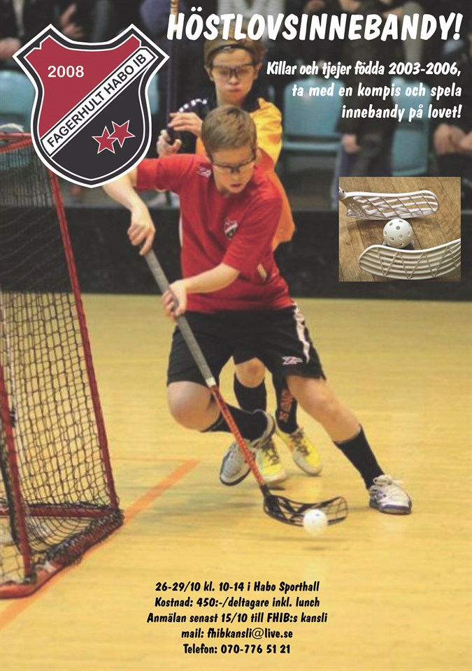 nu är det spikat.. - Vi kör höstlovsinnebandy. Endast 2 dgr kvar att anmäla sig! Kontakta kansliet, sista anmälan på torsdag.