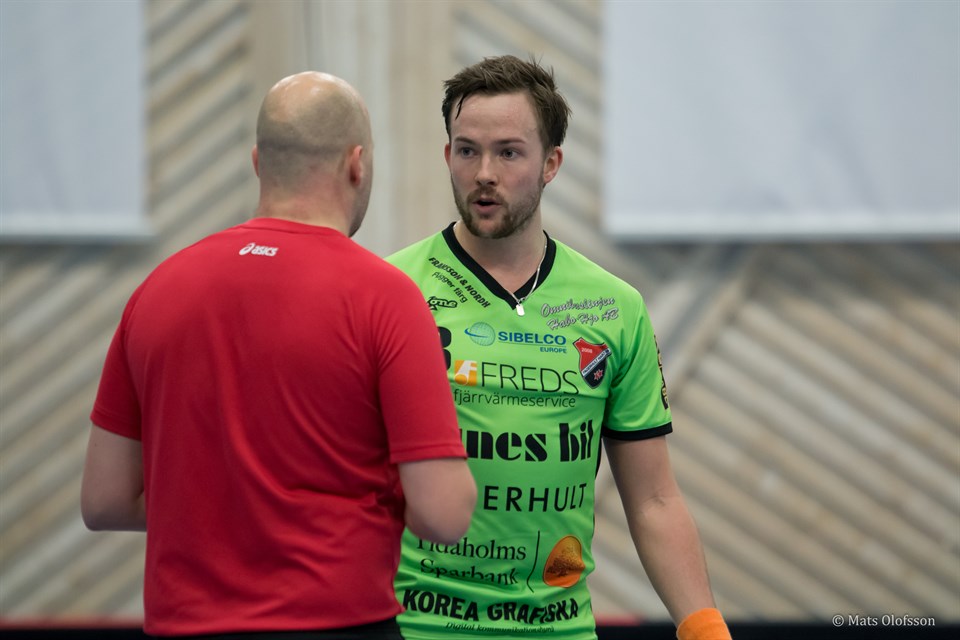 Vårt herrlag avslutade kommunkampen i går eftermiddag i Nyhemshallen. Det blev till sist en väldigt klar förlust med 11-4 (4-2 3-2 4-0) Vi hade 4-4 efter halva matchen men orken tröt betänkligt och Mullsjö kunde till sist dra ifrån tämligen enkelt. En sjukdoms epidemi härjar just nu i laget och på torsdagsträningen, som ställdes in, fanns bara 9 spelare tillgängliga. På matchdagen saknades då flera etablerade namn i laguppställningen och med tanke på det motstånd som Mullsjö är så behöver vi ha alla friska och hela för att kunna bjuda upp till en rejäl kamp. En av ledarna i mais, Emil Lindqvist, sa att dom hade haft samma läge för 14 dagar sen. Skönt att det inte var seriepremiär!! Målen gjordes av Erik Olofsson 2, Joel Dagman och Jonatan Olsson ett var. Det som gladde mest, Robin Levander gjorde sin första period ihop med broder Jeff Adolfsson och Joel Dagman. Det vi fick se, såg väldigt intressant ut. Bakåt var Viktor Gustafsson (bilden) väldigt stabil och gjorde en gedigen insatts. Conny Steenberg, tränaren i FHIB, var inte allt för nedslagen. - Dom som var med fick en bra genomkörare och fick känna på bästa möjliga motstånd. Att vi tappar är inte mycket att säga om. Vi blir dock lite väl stressade i bland och en del "indianare" blev det, som fick förödande konsekvenser. Sen är det aldrig roligt att förlora oavsett motstånd och hur det har gått till. Nu hoppas vi att alla frisknar till och att vi får två bra träningsveckor fram till seriestarten. Det återstår dock en träningsmatch nästa helg hemma mot FBC Lerum. Vi kommer då att presentera alla spelare, med lite extra fokus på nyförvärven, innan matchen. Missa inte det. Foto: Mats Olofsson