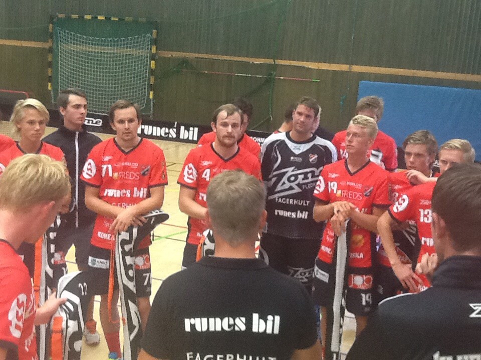 Då var hemmapremiären avklarad. Åstorp/Kvidinge stod för motståndet. Att börja mot en hungrig nykomling kan vara en en nog så tuff inledning. Period 1. Det började lite virrigt och det var ingen riktig struktur på spelet. Dock kunde Björnell bryta ett uppspel och skicka in 1-0 ganska tidigt. Även 2:an, Liljegrahn, kom som ett brev på posten. Känslan var att dom båda målen fick vi lite för enkelt och då är det lätt att slappna av en smula. Så blev också fallet. Å/K fick sätt två ganska enkla mål, ett i vårt PP bla, då försvarsspelet blev för tamt. Ändå kunde vi ta ledningen igen, Mattlin, inte direkt välförtjänt i det läget. Alla i hallen satt nog och trodde att vi skulle hålla det till periodpausen men ett ögonblick av okoncentration så var det kvitterat med 28 sek kvar. Period 2 Det byttes lite chanser under första delen av perioden utan att något av lagen kunde få till det. Då plötsligt släpper allt och på 2 min öser vi in 3 kassar, i tur och ordning Dagman-Liljegrahn-Blåberg. Proppen ur, kan man säga. En reducering fick gästerna till strax efter och då var det bara 2 mål upp igen och match. När sen, med mindre än minuten kvar, vi drabbas av en lite onödig utvisning så började det osa hett kring vår kasse. Men i detta läget rusar Dagman ifrån sin förvarare,efter en rensning, och rundar mv iskallt och lägger in den i tomt mål, 19.58. Ett väldig psykologiskt mål, minst sagt. 3 period Med 3 mål upp inför sista så borde matchen vara över, kan man tycka. I innebandy så finns dock inga givna lägen då man kan slappna av och spela på resultatet. När Haraldsson på volley vispar in 8-4 efter dryga 5 min så känns det som om slaget är över. Så blir också kontentan och Å/K får mest försvara sig mot ett allt hungrigare hemmalag. Målen börjar också trilla in i strid ström, Dalle-Haraldsson-Lennartsson och Björnell. En del av målen var riktiga läckerheter dessutom så publiken, dom allra flesta i alla fall, lär återkomma. Slutresultat 12-4 (3-3, 4-1, 5-0) Sammanfattningsvis så växer vi in i matchen ju längre det lider. Skönt att se att försäsongens hårda träning gör sitt vilket resulterar i en större tyngd i de avgörande lägena. Gästerna kommer säkert plocka en hel del poäng när man vuxit i den allsvenska kostymen. Nu är det Kalmarsund borta nästa helg och då gäller det att ta på jobbaroverallerna igen och bevisa att det inte var en tillfällighet. Se matchfakta på www.innebandy.se.