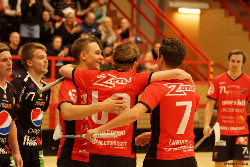 Söndageftermiddagens möte mellan FHIB's herrar och gästande Partille slutade med storseger för hemmalaget med 11-5(2-0,3-2,6-3) efter en stabil insats av hela laget. Att matchen var av stor betydelse märktes på båda lagen i inledningen men när FHIB fick in 1-0 och senare även 2-0 i mitten av första perioden blev det lugnare i leden. Partille stötte högt matchen igenom och när FHIB hade en dag när spelvändningarna fungerade så straffade man gästerna ganska hårt. När Joel Dagman, som blev tremålsskytt och utsågs till matchens lirare, gjorde 3-0 omedelbart i inledningen av andra perioden så kändes det som Partille dämpades men via en reducering i PP några minuter senare väcktes ett hopp för gästerna och när FHIB sedan gav dem ytterligare fyra minuter i samma spelform så kom oron krypande hos FHIB-anhängarna. Men istället för fler Partillemål så var det faktiskt hemmalaget som skapade de vassaste chanserna, dock utan att kunna sätta dit bollen. Men strax efter att man blivit fulltaliga så kunde Dagman stänka upp 4-1 och det blev med facit i hand matchavgörande. Lagen gjorde varsitt mål i perioden och när sedan FHIB gjorde två snabba mål i inledningen av slutperioden så var matchen punkterad. Målen rann på och publiken bjöds på flera riktigt vackra upprullningar av ett FHIB som kunde spela ut. Alla spelare svarade för starka insatser och den här matchen vanns av laget, dock stack flera insatser ut extra mycket. Carléns målvaktspel imponerade stort, Olofsson var bombsäker i försvarspelet och jätteroligt att det lossnade i målskyttet för Dagman. Nu väntar en spelledig helg innan upplösningen av Allsvenskan fortsätter! Målen: 1-0 Tobias Haraldsson(Andreas Lindholm) 2-0 Martin Ullström(Pontus Mattlin) 3-0 Joel Dagman(Robin Blåberg) 4-1 Joel Dagman 5-2 Tobias Haraldsson(Jakob Lundström) 6-2 Joel Dagman(Efraim Björnell) 7-2 Martin Ullström(Tobias Haraldsson) 8-3 Robin Blåberg(Erik Olofsson) 9-3 Erik Olofsson(Efraim Björnell) 10-3 Robin Blåberg(Daniel Pettersson) 11-4 Oscar Liljegrahn(Andreas Lindholm)