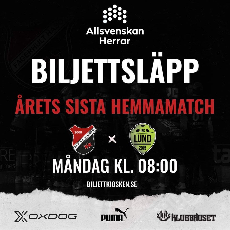 Kommande lördag spelar herrlaget årets sista hemmamatch när IBK Lund kommer på besök. Vi hoppas du vill vara på plats för att stötta laget mot tre poäng och runda av 2022. Det kommer finnas möjlighet att köpa julklappar från vårt uppskattade supportersortiment samt bingolotter till uppesittarkvällen. Säkra din plats redan i morgon. Biljetterna hittar du på Biljettkiosken.se Fagerhult Habo IB 11 dec 2022