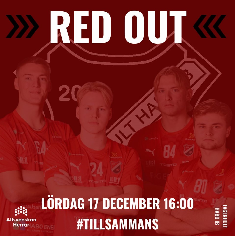 På lördag färgar vi Sporthallen röd för att fira in julen och samtidigt stötta herrlaget i årets sista hemmamatch. Ta på dig matchtröja, tomteluva eller något annat kul i rött. Har du ingen röd tröja. Inga problem. Vi delar ut röda tröjor i entrén. Begränsat antal så först till kvarn gäller. Biljetterna är släppta på biljettkiosken.se Fagerhult Habo IB 12 dec 2022