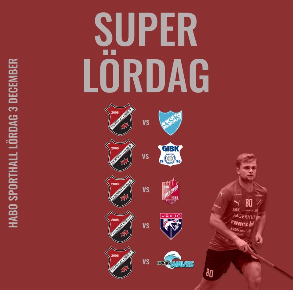 Det blir en riktig superlördag till helgen i Habo Sporthall kommande helg. Mängder av matcher, besök av Ravelli samtidigt som vi förvandlar B-hallen till ett aktivitetscenter med roliga aktiviteter. Första matchen för dagen spelas 10:00 i C-hallen och vi rundar av 16:00 när herrarna ställs mot Lindås IBK. Lindås som har Habos genom tidernas främsta innebandyspelare, Daniel Calebsson, som tränare. Ravelli kommer finnas på plats och visa upp sina produkter som också kommer att finnas att köpa. Bland annat hittar du ett särskilt framtaget sporttvättmedel som dagen till ära kommer att finnas att köpa med Fagerhultlabel. Sporttvättmedlet är väldigt effektivt och tar bort svettlukt på ett imponerande sätt. Rekommenderas särskilt till dig som har en målvakt i familjen. I B-hallen kommer du kunna testa på speedshooting och Nattduellen som du kanske känner igen från Mästarnas Mästare plus lite annat smått och gott. Det här blir en dag du inte vill missa! Spelschema - Sporthallen 10:00 FHIB P10 - Aneby SK, C-hallen 12:00 FHIB F10/11 - Gnosjö IBK, C-hallen 12:00 FHIB JAS - IBK Lockerud/Mariestad, A-hallen 15:00 FHIB DJ - Växjö IBK U, C-hallen 16:00 FHIB A - Lindås IBK, A-hallen Biljetter till herrlagets match köper du som vanligt via biljettkiosken.se Det spelas också matcher i Fagerhus och Alléhallen under dagen. 12:00 FHIB P12 - Jönköpings IK, Fagerhus 14:00 FHIB P10 - Jönköpings IK, Alléhallen 15:00 FHIB P12 - Sävsjö IBK, Fagerhus