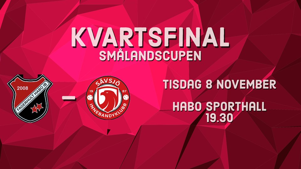 Nu på tisdag är det dags för kvartsfinal i Smålandscupen för vårt div 3 lag. KL 19.30 tar vi emot Sävsjö IBK och det kommer att bli en tuff batalj i A.hallen Vi hoppas på mesta och bästa möjliga stöd från läktarplats och hälsar alla hjärtligt välkomna! Fagerhult Habo IB 5 nov 2022 0kommentarer