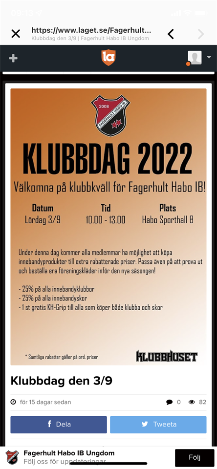 Hej o välkomna till en ny säsong med FHIB!. Som vi informerat om i tidigare utskick kommer vi att skicka fakturor på avgifterna via Laget.se/Billogram. Fakturorna kommer inom den närmaste veckan Vi har nu även mailat ut vårt medlemsbrev via Laget.se,där finner ni mer info om säsongen Medlemsbrev och faktura går till den mail som finns registrerad på er lagsida på Laget.se. Förfallodatum framgår av medlemsbrevet och på fakturan. Saknar ni er faktura, kolla i skräpposten eller hör av er till vårt kansli Meddela alltid om ert barn har slutat så att vi kan hålla våra medlemsregister aktuella. Mvh FHIB Styrelse/Kansli kansli@fagerhulthabo.se P15 31 aug 2022 0kommentarer