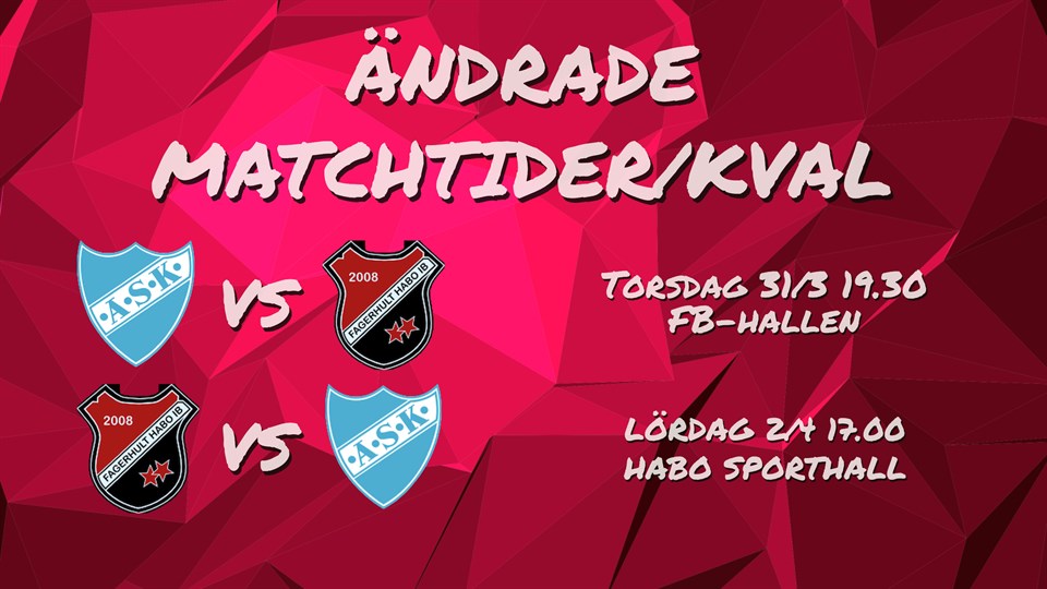 Lite ändringar på våra kvalmatcher Aneby 31/3 kl 19.30 istället för 19.00 Vår hemmamatch är flyttad till lördag kl 17.00 istället för söndag kl. 19.00 Väl mött i Habo Sporthall!!