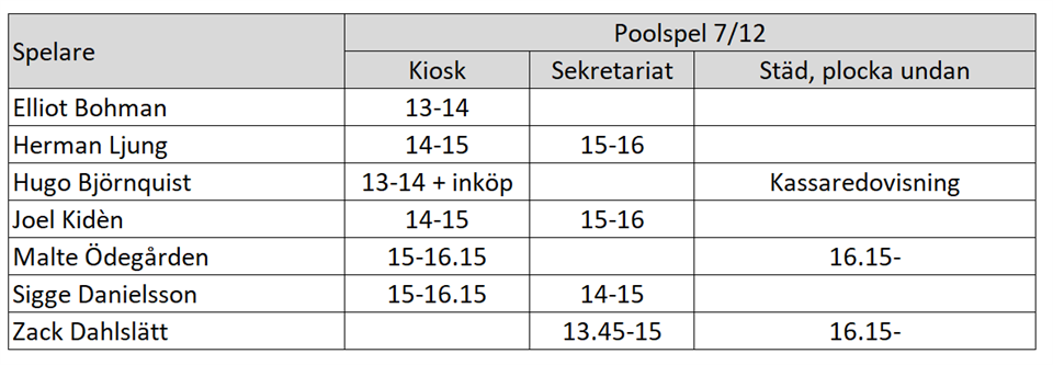 Kiosk- och sek-schema poolspel 7/12